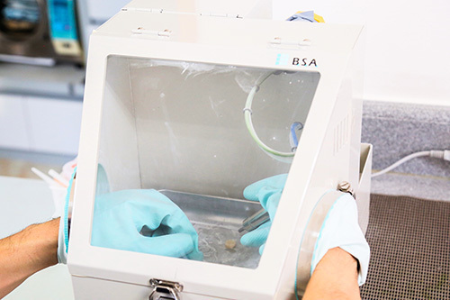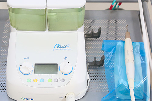 また患者さまのお口に入る、歯を削る際に出る水やうがい用の水には、細菌の繁殖を抑える効果がある低濃度の過酸化水素水を使用しています。さらに高濃度の過酸化水素水による浸け置き処理が可能な「集中水消毒システム」も導入し、休診日の前日にセット。休診日にも消毒対策をとることで、常に水の清潔を維持しています。